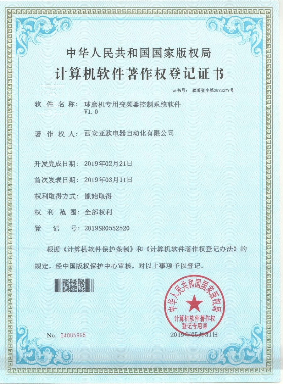 - 關(guān)于我們 - 資質(zhì)榮譽(yù) - 球磨機(jī)專用變頻器軟件著作