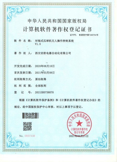 - 關(guān)于我們 - 資質(zhì)榮譽(yù) - 對(duì)輥石壓球機(jī)無人操作控制系統(tǒng)